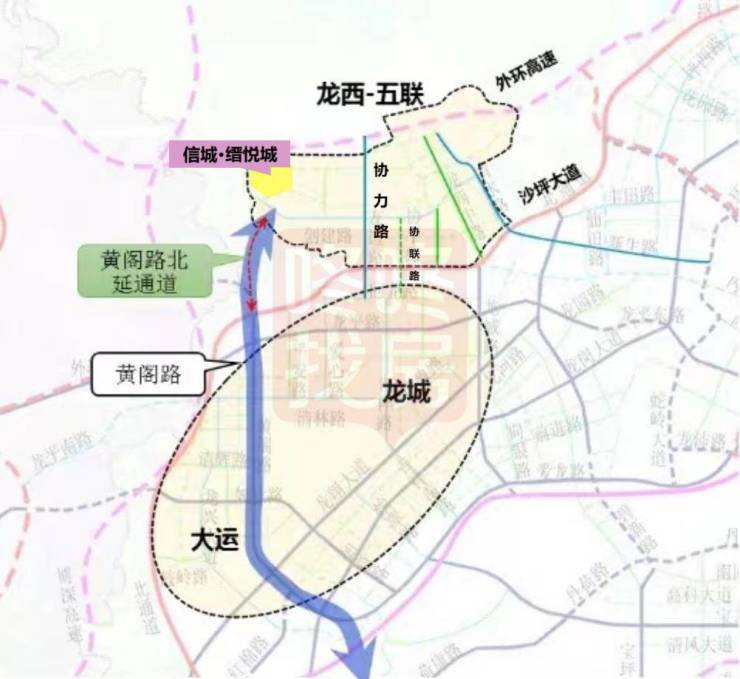 其中黄阁路是作为大运新城南北向的主干道,北延将直接加强龙西—五联与大运的联系,是解决龙西—五联对外交通联系问题的关键通道,同时是构建湾东智芯南北向的重要轴线。