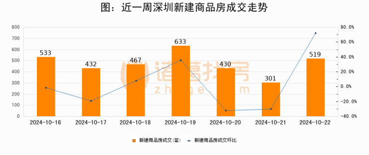 【深圳成交日报】10月22日新房成交519套、二手房355套;涨价房源29套