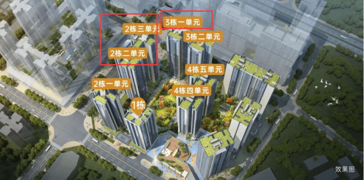 从楼栋分布来看,保障房和商品房/回迁房的各自集中,公共区域共享。本批将推售的2栋二、三单元、3栋一单元位置如下: