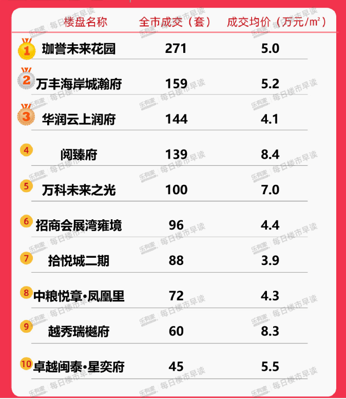 福永、福海的华润云上润府、中粮悦章凤凰里则拿出了价格优势,以4.1-4.3万出头的成交价,成交量也不错。
