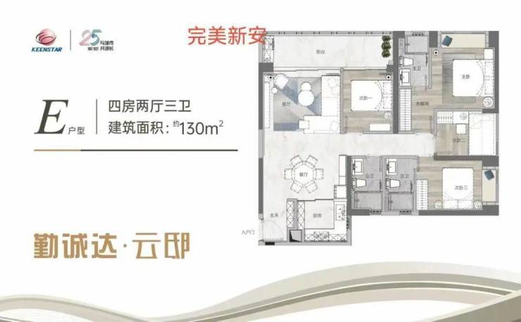 勤诚达云邸户型为建面约89-130㎡的3-4房单位,约481套住宅产品。目前项目展厅已经开放,预计近期开放样板间。