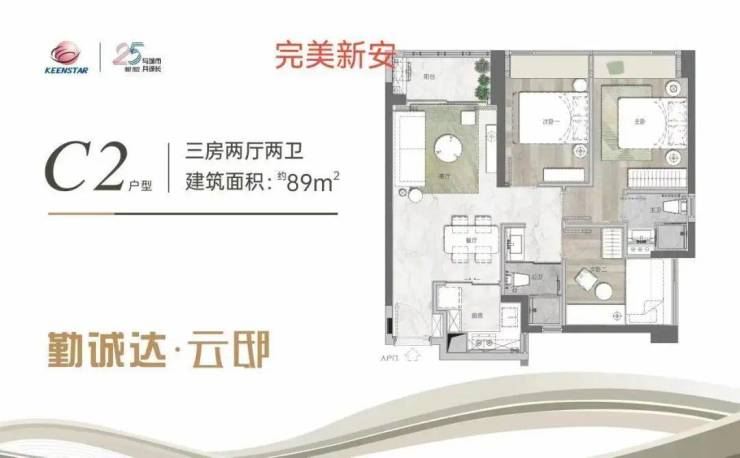 约89㎡经典三房两卫;