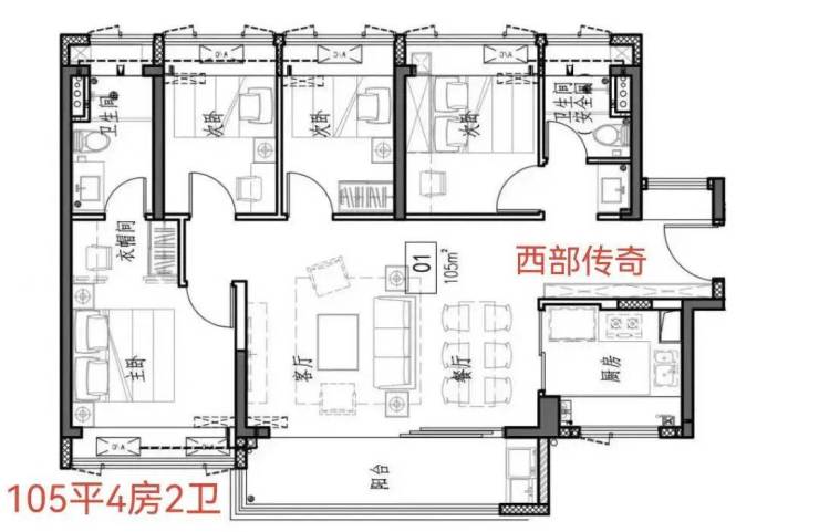 约115㎡四房两卫,约6.15m观景阳台