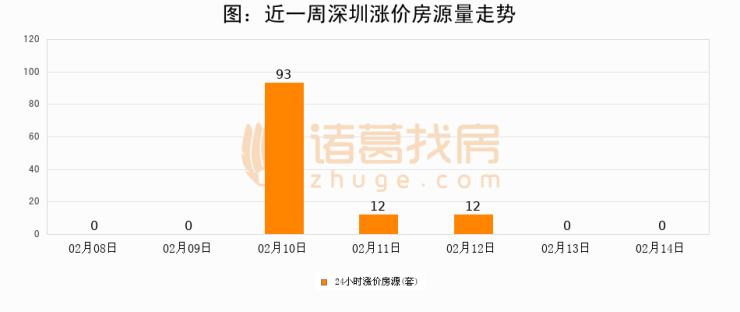 根据诸葛找房数据显示,深圳24小时涨价房源量为0套,较02月13日持平。