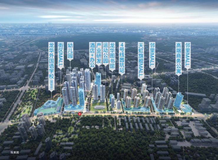 三期毗邻龙华外国语学校福城校区(建设中),背靠龙华图书馆及项目一、二期,自带“一城三MALL”,形成南北纵向约1公里的大道首排封面。