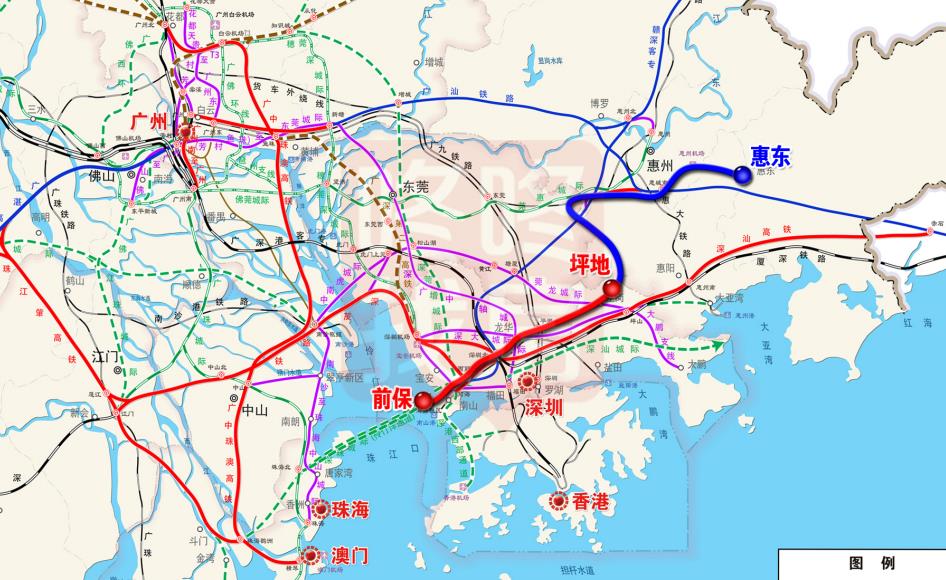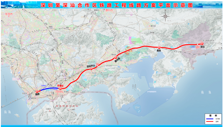 1月8日, 在广东省生态环境厅发布的《深圳至惠州城际铁路前海保税区至坪地段环境影响报告书受理公告》中,出现一条新城际线路——深汕城际。