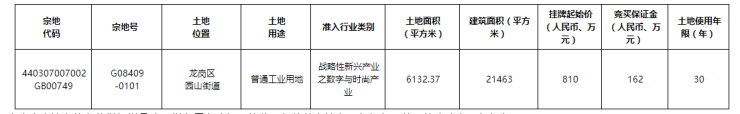 龙岗连挂两宗工业、产业用地,拟于8月14日出让