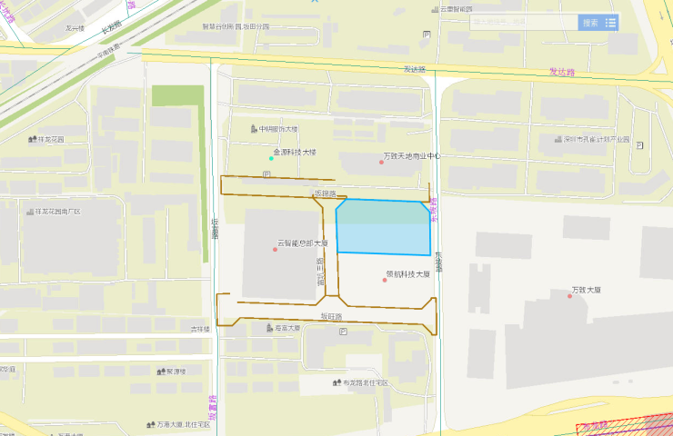 地块位坂田坂锦路和东坡路交汇处西南侧,位于万致天地商业中心南侧,云智能总部大厦东侧,领航科技大厦。