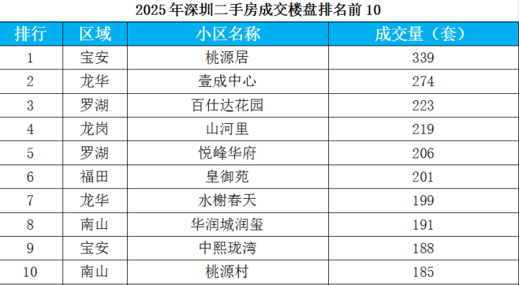 2025年龙岗成交最猛,桃源居小区稳居第一