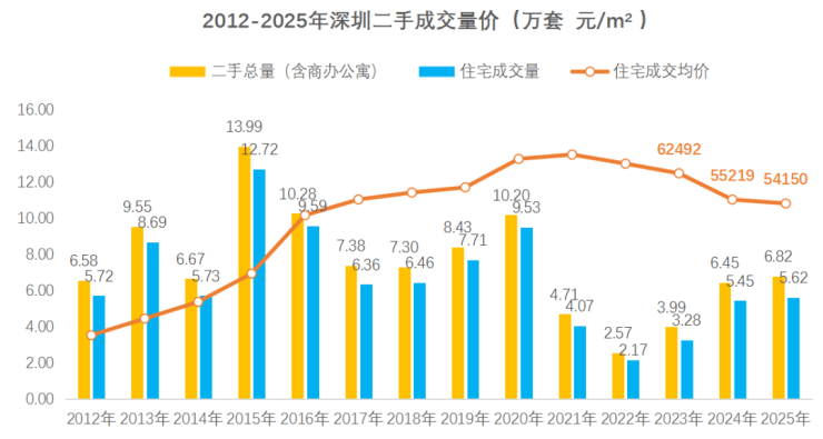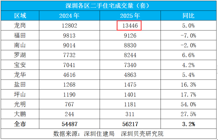 聚焦到整体数据来看:2025年深圳卖出约3.79万套新房住宅(含现售)、约5.62万套二手房住宅,合计约9.41万套住宅房源。