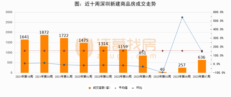 进入2025年第07周(02月10日-02月16日),深圳新建商品房成交636套,较上周增加379套,环比上涨147.5%