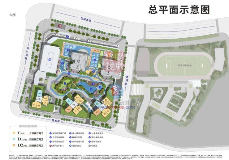 观澜汇一期配套先行,打造住宅+MALL+学校的品质舒适社区;二期在一期的基础上增加了高端公寓业态,实现既有臻品社区,又有满足商务居住需求的多元社区。