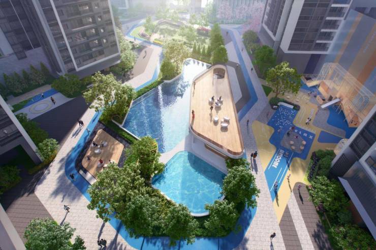 包含萌动稚趣 IP 主题乐园、环形漫跑道、全龄亲子双泳池、空中运动公园(公配)等设计空间。