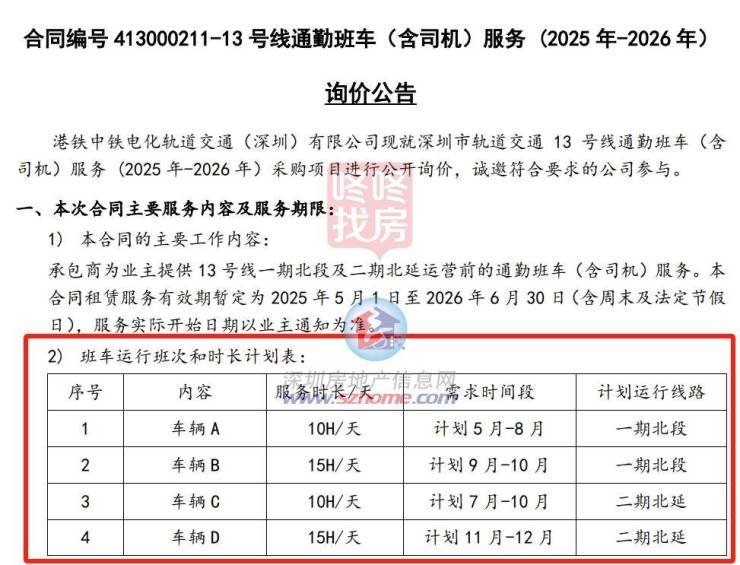 近日,港铁深圳在官网公布了《13号线通勤班车(含司机)服务 (2025年-2026年)询价公告》。