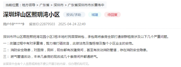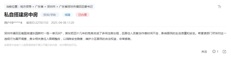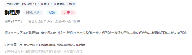 事实上,深圳不少老旧小区是“房中房”群租问题的重灾区,自住业主不堪其扰,频频找渠道投诉以维护自身权益。