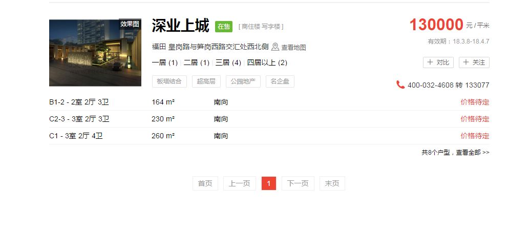 深业上城公寓位于综合体北区,由两座高约224.5米大厦组成,是深圳第二高的玻璃幕墙公寓建筑,总建筑面积17万㎡,高62层,共639套单位。主力精装户型106-358㎡一房至四房,少量毛坯户型440-470㎡。车库共有1400个车位。均价在13000万左右,小编看到已经有人入住。
