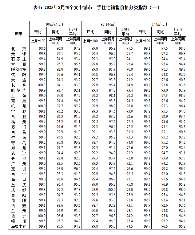 国家统计局城市司首席统计师王中华解读2025年8月份商品住宅销售价格变动情况统计数据。