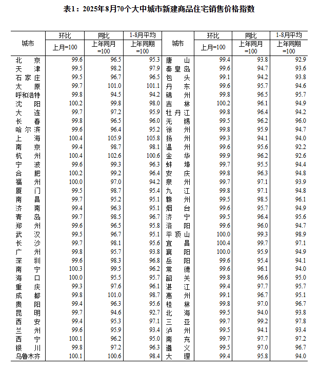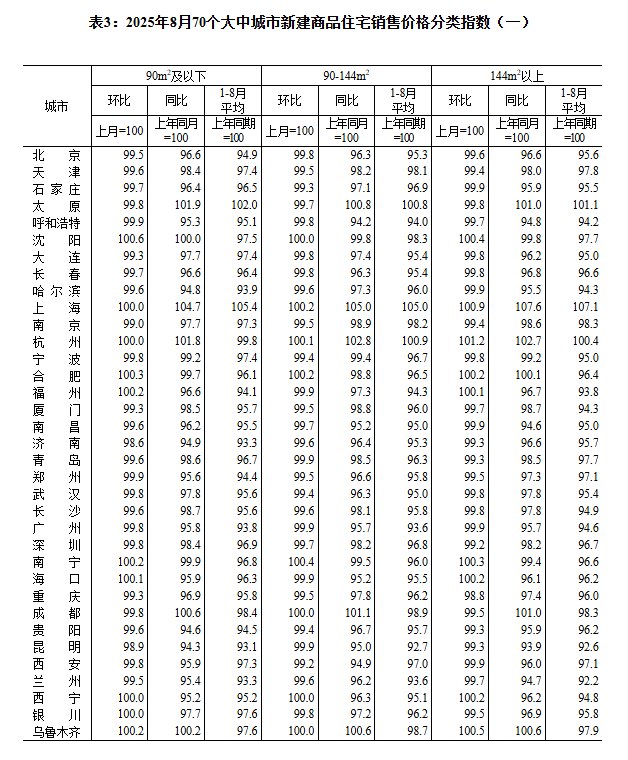 ——国家统计局城市司首席统计师王中华解读2025年8月份商品住宅销售价格变动情况统计数据
