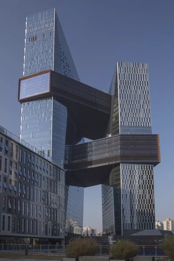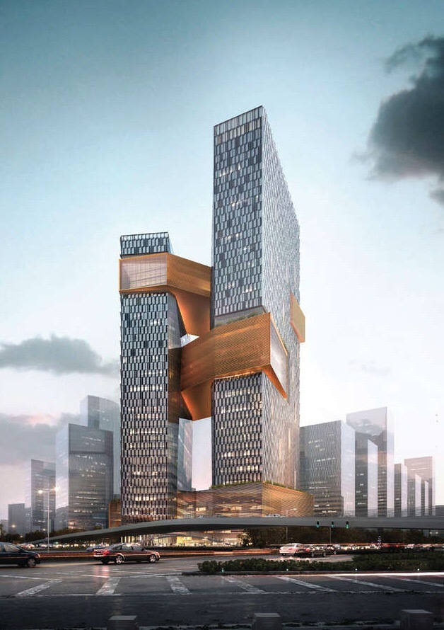 塔楼间3道连体分别位于3至6层,21至26层和34至38层。三条“腰带”其实也是三种不同的工作生活空间,包括2~5层的“文化连接层”, 22~26层的“健康连接层”,和35~37层“知识连接层”。