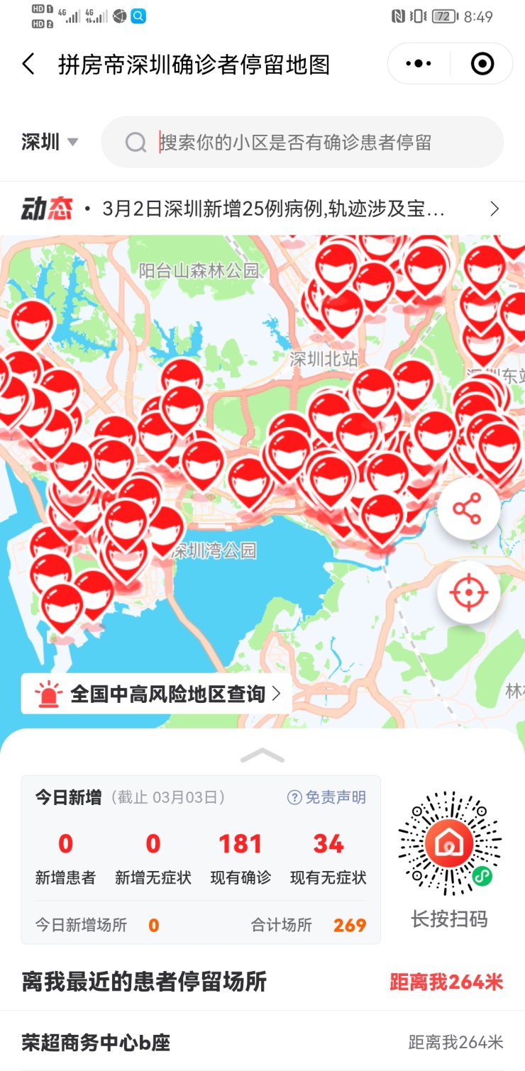 3月2日深圳新增25例病例,轨迹涉及宝安、盐田等6区