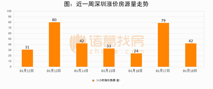 根据诸葛找房数据显示,深圳24小时涨价房源量为42套,较04月17日减少37套,环比下降46.8%。与此同时,涨价房源占比小幅回落,对于购房者来说是一个入市窗口期,购房者可抓住时机入市。