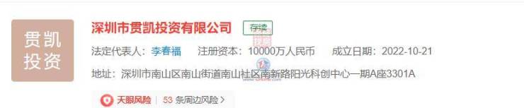 据工商注册信息显示 ,桂庙新村更新单元实施主体深圳市贯凯投资有限公司,成立于2022年,隶属深圳市阳光华艺房地产有限公司等。