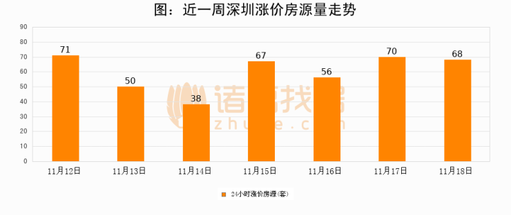 根据诸葛找房数据显示,深圳24小时涨价房源量为68套,较11月17日减少2套,环比下降2.9%。与此同时,涨价房源占比小幅回落,对于购房者来说是一个入市窗口期,购房者可抓住时机入市。