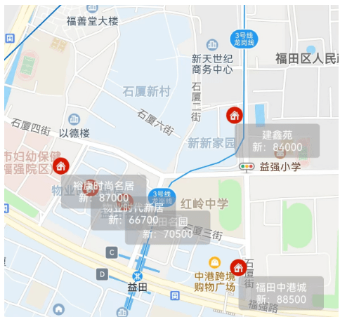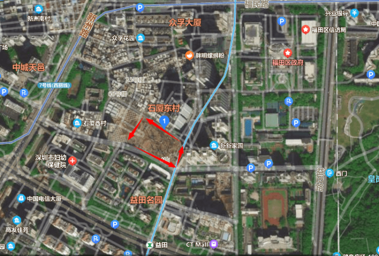 新天石厦铭苑距离地铁3/7号线石厦站约500米,距离3号线益田站约300米(源于地图测距),属于双地铁口物业。