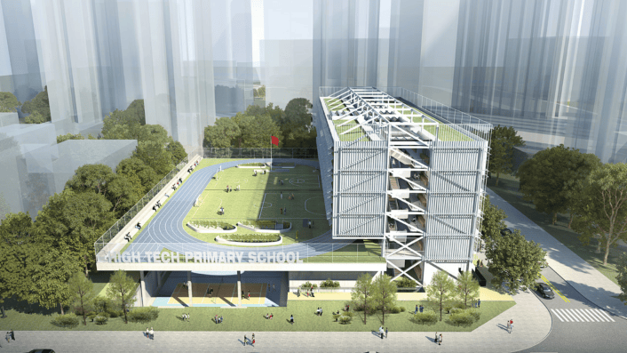 高新小学项目总用地面积约6800平方米,建筑面积24055平方米,满额可提供24个教学班、1080个学位,系南山区重点民生工程,由南山区建筑工务署负责建设,也是华南地区首座以“近零能耗”为设计理念的新型学校。