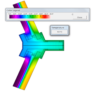 CFD模拟与光环境模拟分析显示,在室外温度34℃-38℃条件下,结合电动可调节遮阳帘及顶出风和地出风上下对流的冷空气循环机组系统及遮阳措施,近幕墙位置人行1.2-2米区域的温度基本可以保持在24℃-27℃区间,舒适度较好。傍晚时分室内局部区域受眩光影响,可以通过电动可调节遮阳帘来进行有效控制。