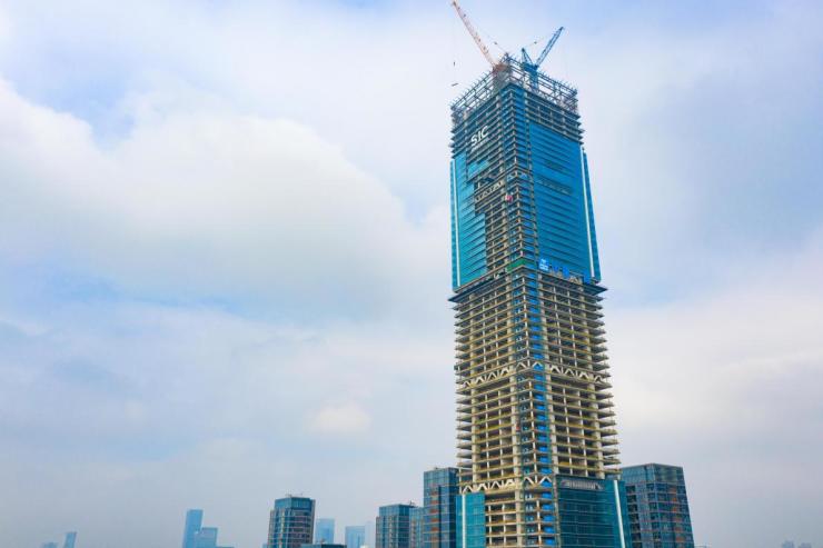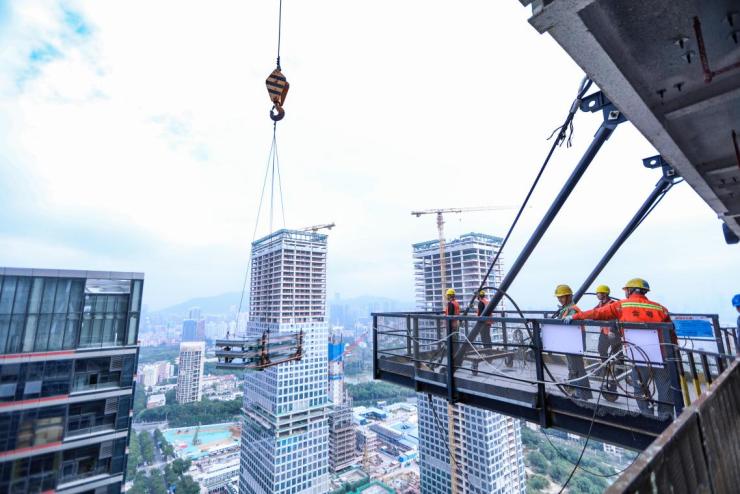 城市客厅、中央绿轴、超级产业集群、SIC超级总部中心……备受关注的深圳湾超级总部基地(以下简称“深超总”)正在稳步建设中。日前,记者前往深超总排名前列项目深湾汇云中心现场看到,项目中的9栋建筑已经竣工,超高层建筑SIC超级总部中心封顶后,目前正进行外立面幕墙施工建设。
