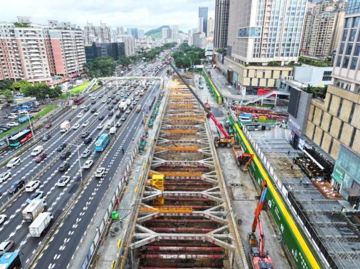 车站位于107国道与上川二路交叉口,周边环境复杂,紧邻万达广场、住宅区及上川人行天桥,施工难度大、标准高。施工过程中,项目部严格落实基坑降水、支护结构安装、实时监测等关键环节,通过对围护结构、支撑轴力、周边建筑物沉降等数据的动态监测,实现了信息化施工,确保了基坑稳定和周边环境安全。项目团队投入多台长臂挖机、小型挖机及伸缩臂抓斗等设备,科学组织、昼夜奋战,克服了深厚砂层、岩层爆破等地质难题,确保了开挖作业高效、安全推进。