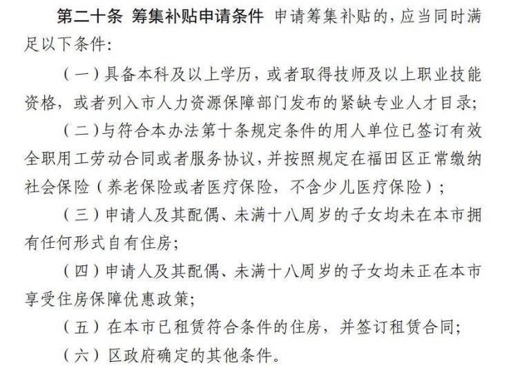 本科及以上学历/技师职业技能资格/紧缺专业人才,同时还需要与符合福田区政策支持规定企业签订劳动合同,并且在福田正常缴纳社保.....等所有条件。