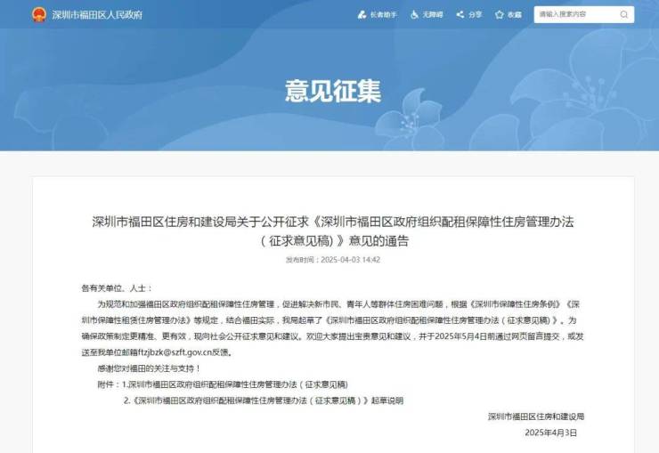 继光明、龙岗之后,福田也发布了区级保租房管理办法征求意见稿(以下简称意见稿)。