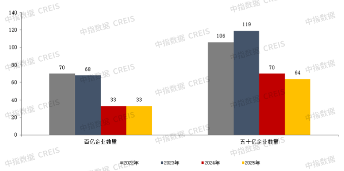 图:2022年至2025年各年1-5月百亿、五十亿房企数量