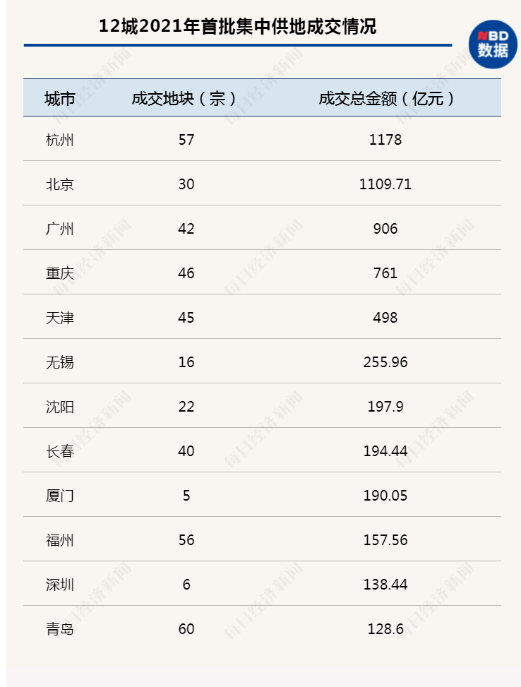 自4月15日长春打响集中拍地“排名前列枪”至今,22个重点城市中已有长春、广州、无锡、重庆、沈阳、杭州、北京、福州、青岛、天津、深圳、厦门12城结束了首轮集中拍地。