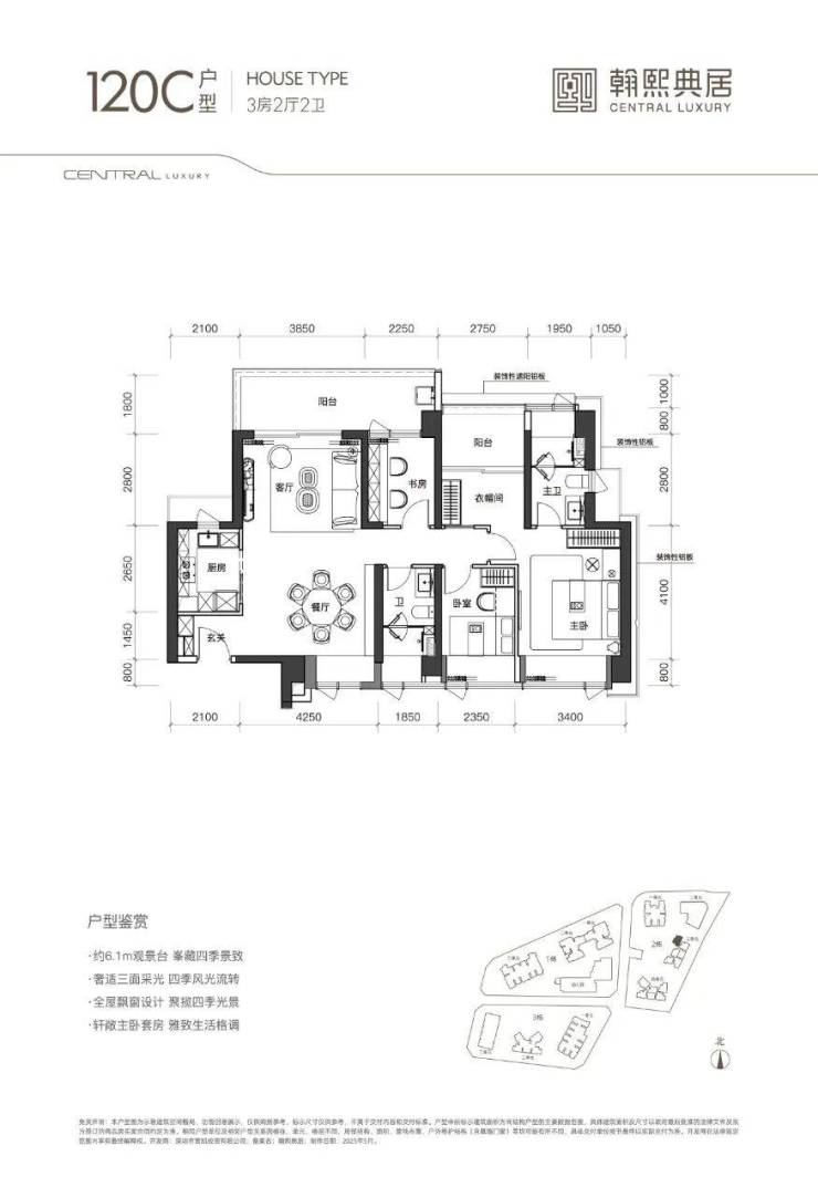 120㎡户型折后总价约1038万起,折后单价8.6万起