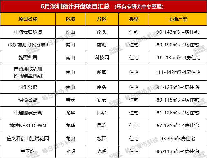 乐有家研究中心近期不完全统计,6月份深圳预计入市的10个新房楼盘,一半都在南山,而且统统都是3-4房的中大户型,妥妥都是高客单价的现金流产品,明显针对的客群,也都是南山的高收入群体。