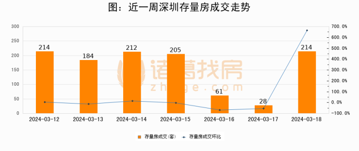 从存量房来看,2024年03月18日深圳存量房单日成交214套,比昨日增加186套,环比上涨664.3%。从近一周存量房成交来看,深圳存量房日均成交套数为159套,03月18日单日成交214套,高于近一周平均水平34.6%。