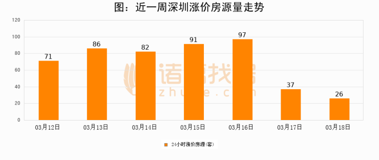 根据诸葛找房数据显示,深圳24小时涨价房源量为26套,较03月17日减少11套,环比下降29.7%。与此同时,涨价房源占比小幅回落,对于购房者来说是一个入市窗口期,购房者可抓住时机入市。