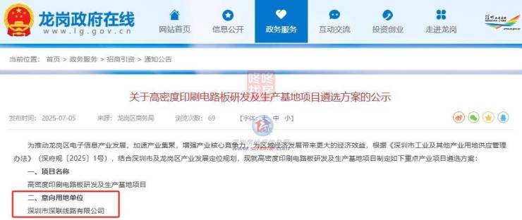 龙岗将出让一宗工业地块!引入这家“电路板”牛企建基地