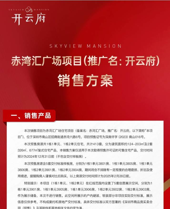 10月7日,南山蛇口的开云府(备案名赤湾汇广场)获批预售。