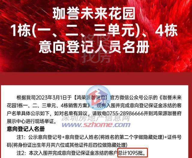 1095批客选1067套房,鸿荣源珈誉府2区名册公示,今日摇号