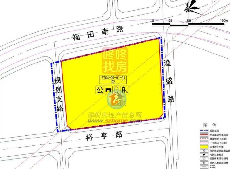 FT04-09-01-01地块用地面积为13987平方米,用地性质为二类居住用地(R2),容积率4.1(其中住宅及其便民服务设施容积率为3.1)