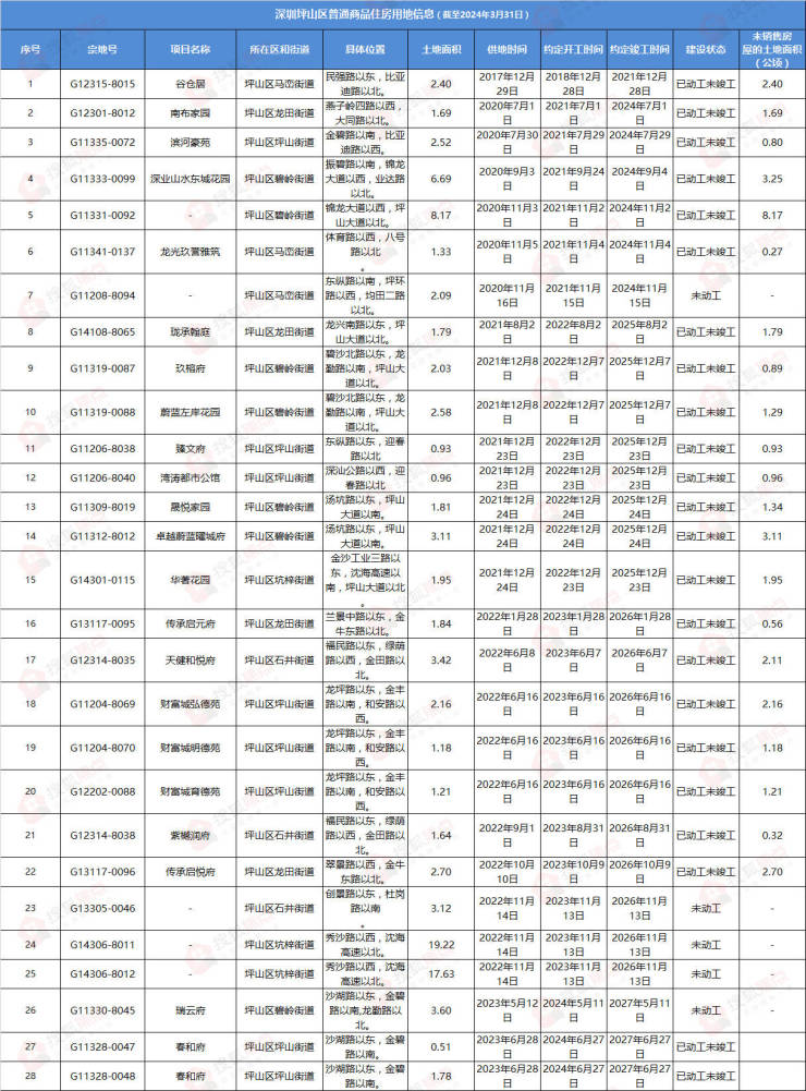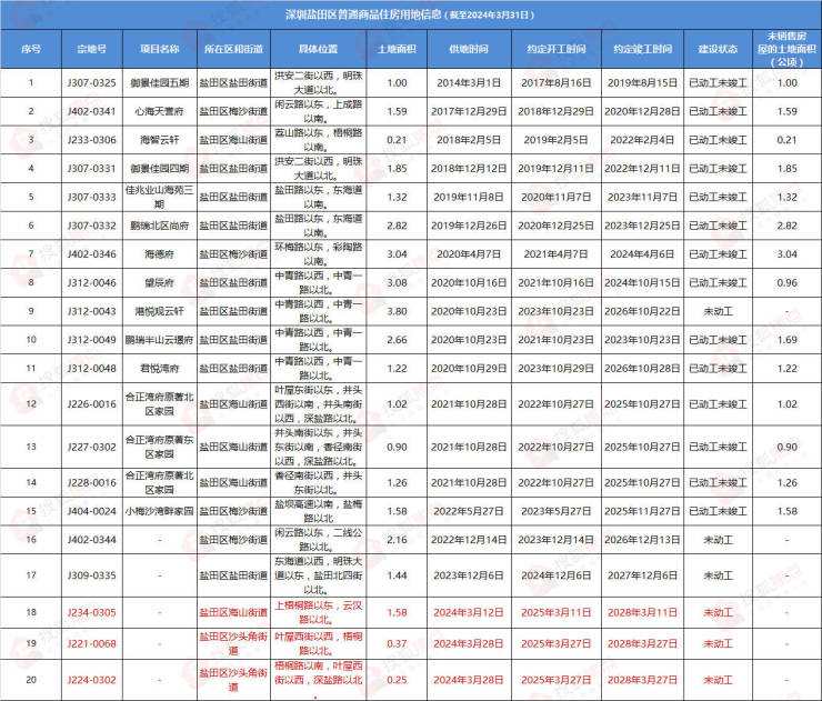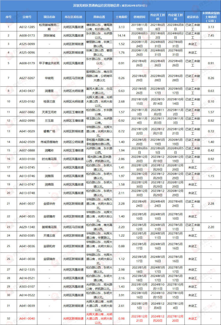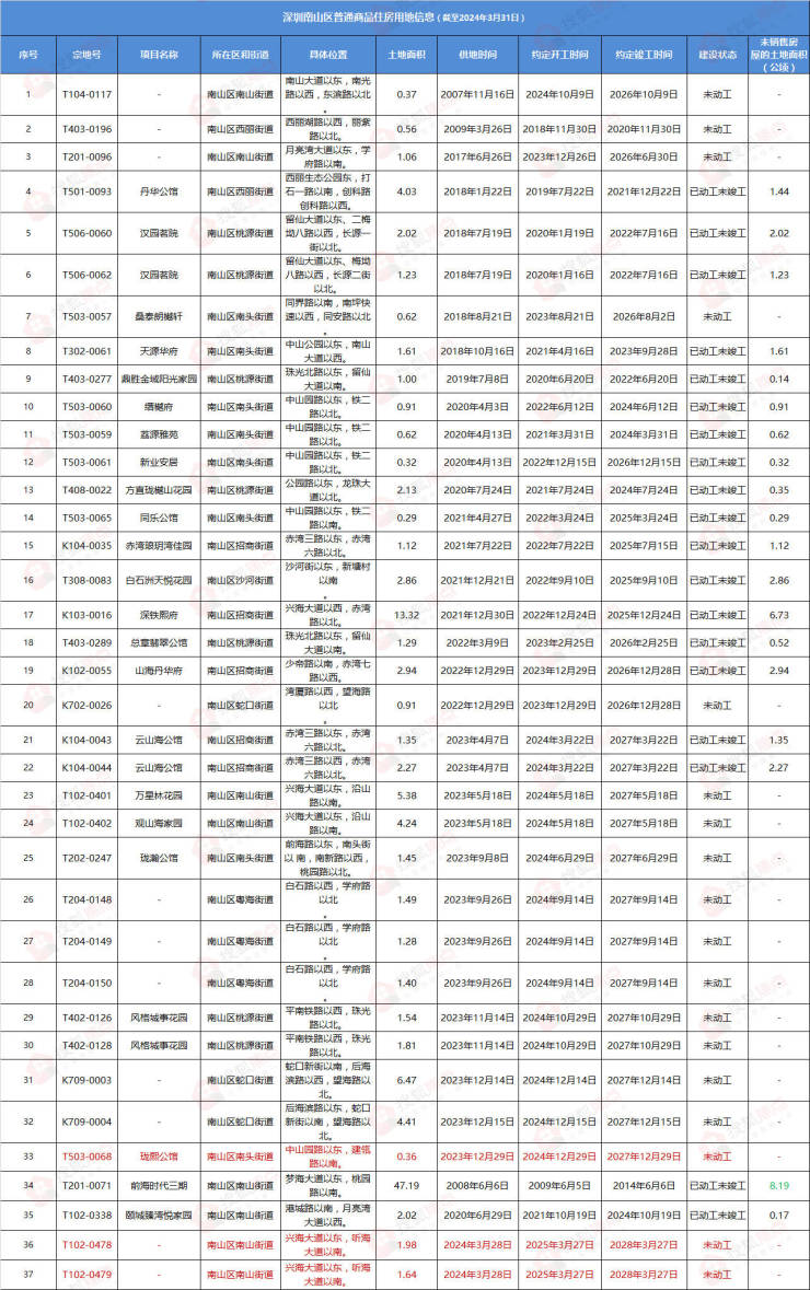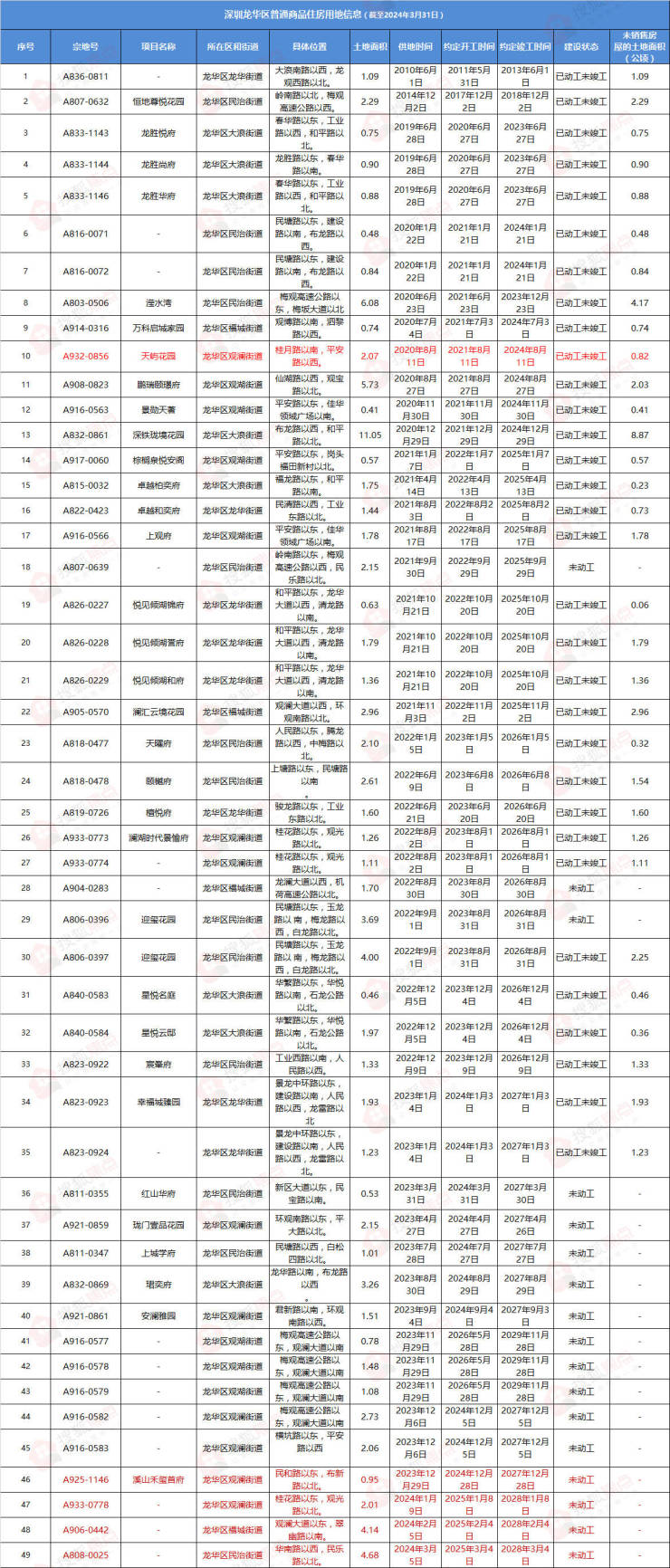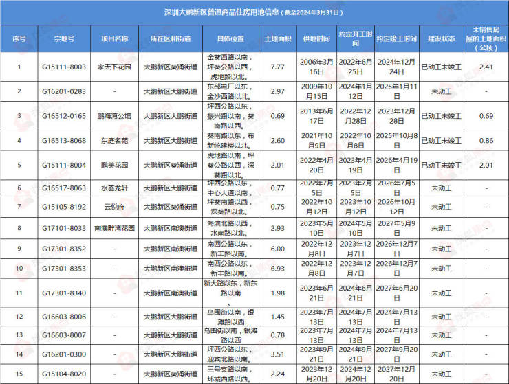 4月19日,深圳市规划和自然资源局公示了最新的“深圳市存量住宅用地”清单,统计时间截至2024年3月31日。