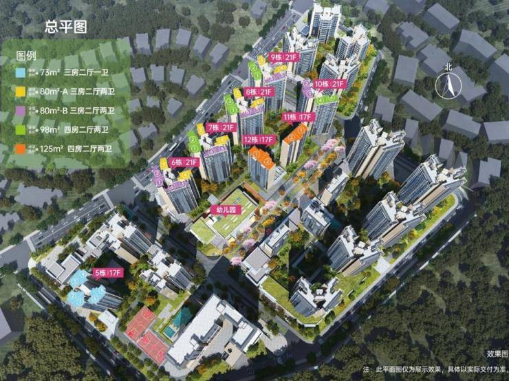 项目占地面积约7.4万㎡,规划建筑面积约21.5万㎡,其中,住宅约19万㎡,商业约1万㎡,项目总体容积率2.91,总户数2466户(其中商品房1699套,保障性租赁住房510套,移交政府的租赁住房257套),计划推出约73-125㎡的三房到四房小高层及洋房。