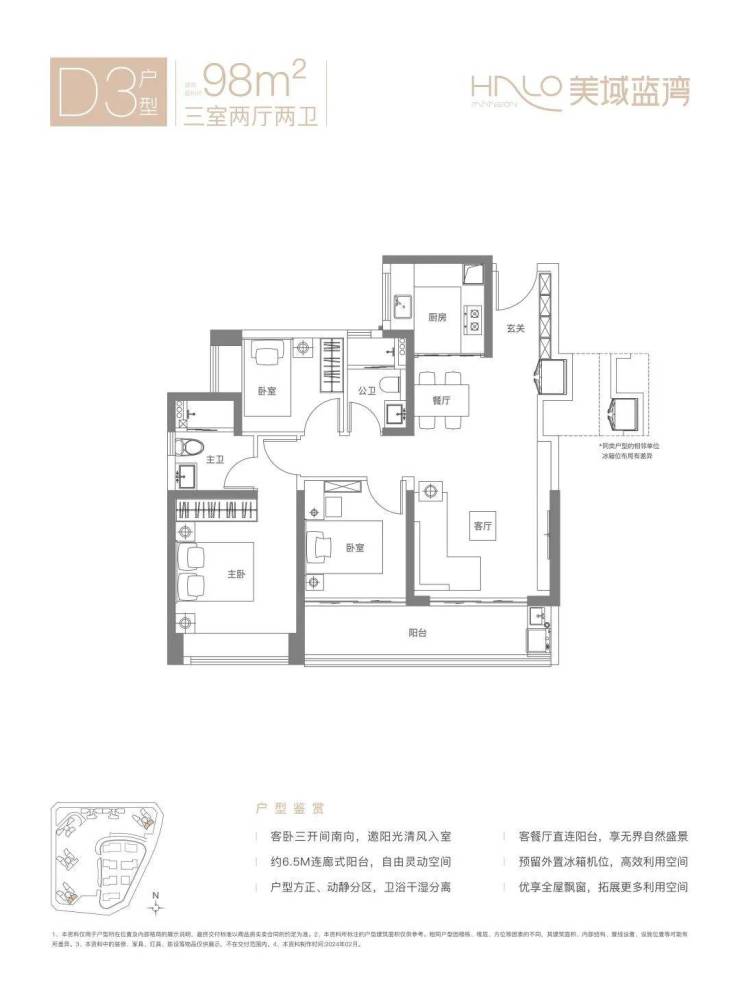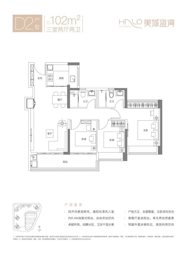 美域蓝湾花园将规划有845套房源,户型建面约98-102㎡的3房2卫、112-119-144㎡的4房2卫户型。