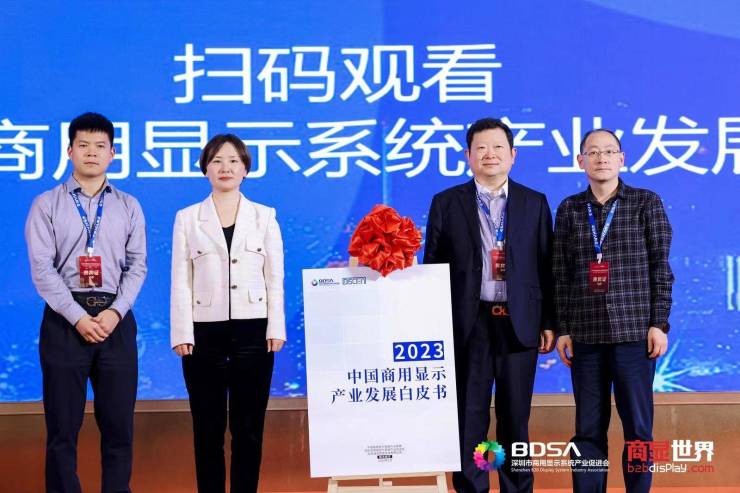 作为本届论坛的主办方,深圳商显产促会会长郭德轩、专家委主任张素兵代表协会还在会上与迪显咨询联合创始人方影超、高级分析师孙潮劲重磅发布了《2023中国商用显示产业发展白皮书》(以下简称《白皮书》)。《白皮书》编写围绕产业政策、产业发展、行业机遇、行业策略及技术驱动因素,阐释不同场景中的商显产品多元化的增量潜力和集成化的发展方向,全面梳理了当下中国商用显示产业发展的规模、现状及产品场景趋势,为行业高质量发展提供借鉴思考。