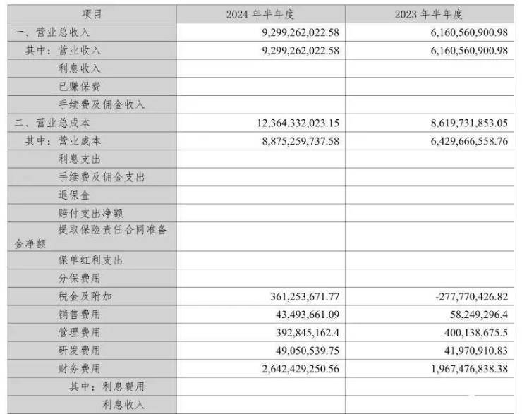 财务数据显示,对净利润影响大的几个指标中,营业成本达88.75亿元,同比增长38.04%;财务费用达26.42亿元,同比增长34.31%;对联营企业和合营企业的投资收益亏损26.34亿元,同比下滑199.91%。