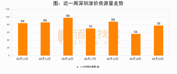 根据诸葛找房数据显示,深圳24小时涨价房源量为78套,较09月19日增加22套,环比上涨39.3%。与此同时,涨价房源占比小幅扩大,业主信心有所提升。